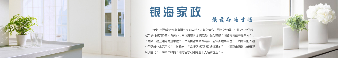 湘潭市银海家政服务有限公司是湘潭市唯一获得5A级的家政服务企业、湘潭市唯一的湖南省十大品牌家政服务企业、全国千户百强家政服务企业。